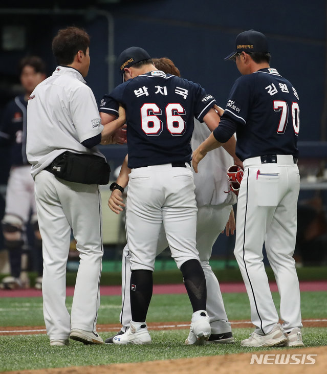 이지영에 땅볼을 유도한 박치국은 박정음을 삼진으로 돌려세웠다. 후속타자 김하성을 볼넷으로 내보낸 박치국은 이정후가 친 타구에 왼 발등을 맞았다. 박치국을 맞고 굴절된 타구를 2루수 최주환이 잡아 1루에서 2루를 지나 3루까지 뛰던 김하성을 아웃시켰다.