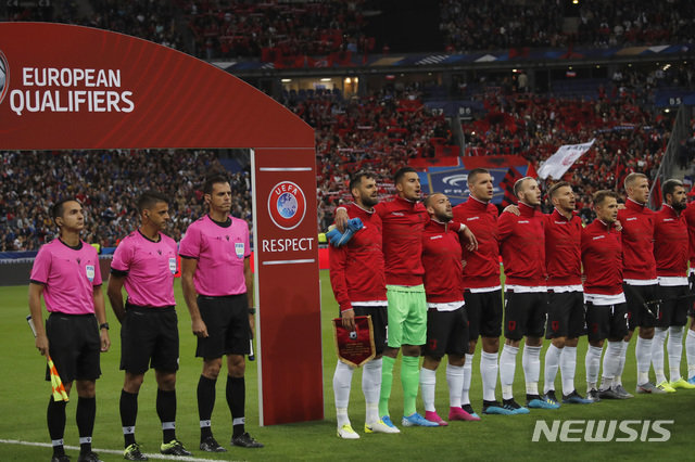 8일(한국시간) 프랑스 생드니의 스타드 드 프랑스에서 프랑스와 알바니아의 유로2020 예선 H조 5차전을 앞두고 알바니아가 아닌 안도라의 국가가 흘러나왔다. 실수였다.