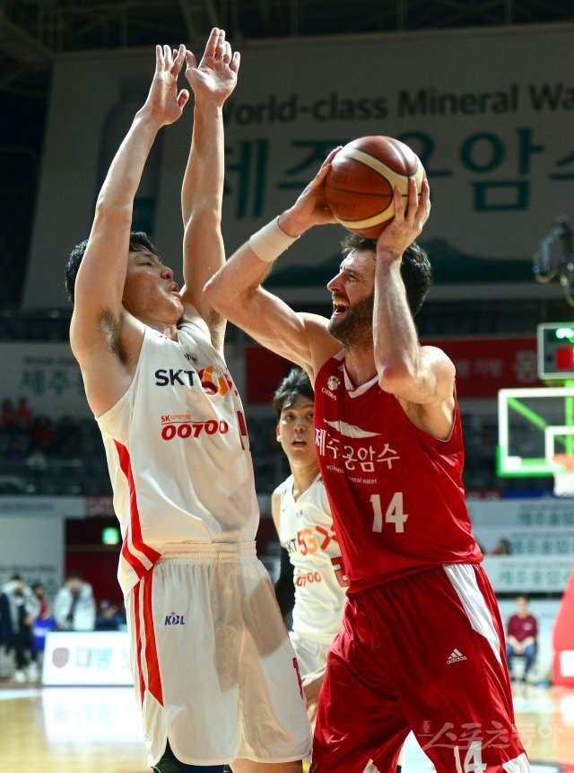 1일 고양체육관에서 열린 ‘2019-2020 현대모비스 프로농구’ 서울 SK와 고양 오리온 경기에서 오리온 사보비치가 SK의 수비를 뚫고 골밑을 공격하고 있다.