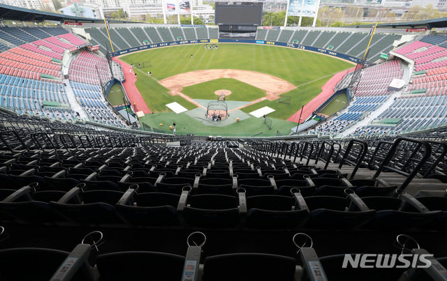 아직 개막이 불투명한 일본프로야구는 한국의 연습경기에 주목했다. 한국이 5월 초 개막을 목표로 하고 있다고 보도했다.