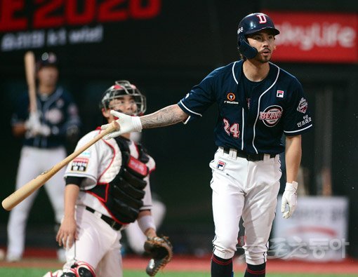 스윙에 공이 걸리는 순간 배트를 훌쩍 내던졌다. 모두가 홈런임을 직감한 타구. 베이스를 돌며 모처럼 환한 미소를 지었다. 오재원(35·두산 베어스)은 그간 짊어졌던 부담을 이 스윙 하나로 어느 정도 날렸다.