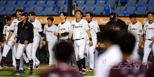 코칭스태프는 물론 선수들에게도 상당한 충격파가 아닐 수 없다. 기존 1군에서 핵심전력으로 뛴 선수들이 상당수 짐을 쌌다. 내야수 송광민, 이성열, 김회성부터 외야수 최진행, 김문호, 투수 장시환, 이태양, 안영명, 김이환, 포수 이해창까지 총 10명이 교체됐다. 다만 어수선한 팀 분위기를 추스르고 덕아웃 리더 역할을 해줘야 할 김태균은 자리를 지켰다.