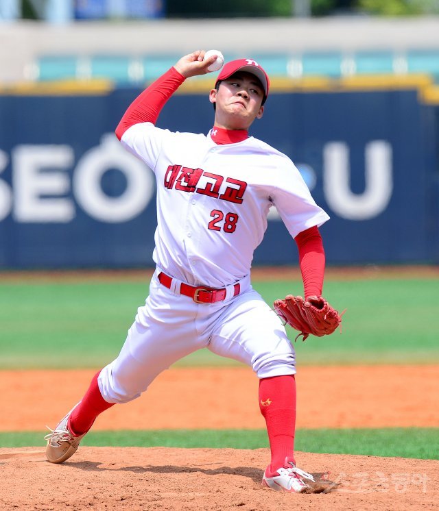 16일 서울 목동야구장에서 ‘제 74회 황금사자기 전국고교야구대회 겸 주말리그 왕중왕전’ 정읍 인상고등학교와 대전고등학교의 경기가 열렸다. 2회초 대전고 전민영이 구원 등판해 볼을 던지고 있다.