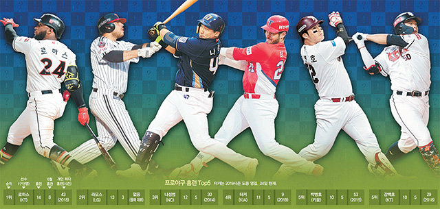 키움 박병호(34)와 KT 강백호(21)는 10홈런으로 공동 5위에 오르며 토종 거포의 자존심을 드러내고 있다. 타격 부진 및 허리 통증 등으로 이달 잠시 2군에 다녀온 박병호는 복귀 뒤 23일 LG전에서 2홈런을 치는 등 컨디션을 되찾고 있다. 김정준 SBS스포츠 해설위원은 “시즌 초반 방망이 끝이 앞을 향하는 안 좋은 습관이 보였는데 2군에 다녀오면서 좋을 때 폼을 되찾았다. 앞으로 더 좋아질 것”이라고 전망했다. 강백호도 타구에 백스핀을 거는 훈련으로 뜬공 비율을 높이면서 홈런이 늘었다.