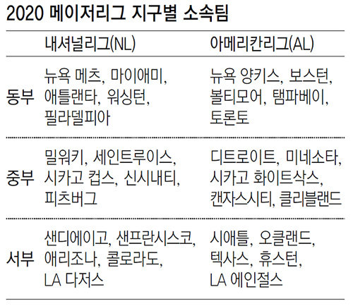 예년과 가장 크게 차이가 나는 건 리그에 관계없이 같은 지구에 속한 팀끼리만 정규리그 일정을 소화한다는 점이다. 메이저리그 사무국은 “선수단 이동을 최소화해 코로나19 감염 가능성을 낮추려는 목적”이라고 설명했다.