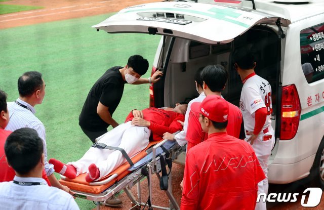 두산의 2회초 공격이 종료된 후 SK 덕아웃이 웅성거리기 시작했다. 상대팀 두산의 김태형 감독이 달려갔을 정도로 심상치 않은 상황이었다. 구급차가 서둘러 SK 덕아웃 앞에 도착했다.