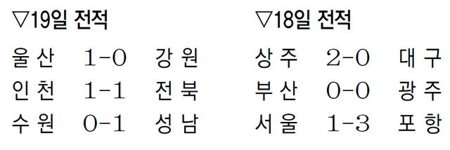 결승골은 울산이 자랑하는 득점 방정식에서 나왔다. 이청용이 측면에서 가운데로 공을 끌고 들어가면서 뒤쪽 공간을 달리던 김태환에게 연결했고, 김태환의 크로스가 페널티 지역 안에 있던 주니오에서 박주호로 연결되는 순간 상대가 파울을 범하며 페널티킥을 얻었다. 성남은 수원을 1-0으로 꺾고 7경기 연속 무승에서 탈출하며 8위로 올라섰다. 수원은 10위로 내려앉았다.