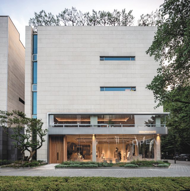 도산공원 정문 앞에 문을 연 메종 사우스케이프는 4개 층으로 이뤄져 있으며 △1층은 사우스케이프 골프&리조트 웨어 매장 △2층은 카페&레스토랑 △지하 1층은 스튜디오형 갤러리 △야외 테라스와 연결되는 지하 2층은 스크린 골프 스튜디오로 구성돼 있다.