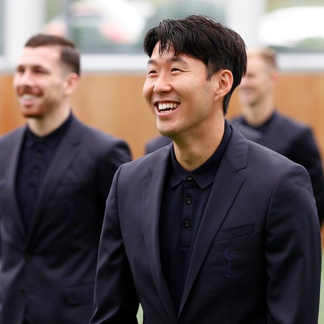 손흥민, 토트넘 단체 촬영서 검정 수트 입고 살인 미소