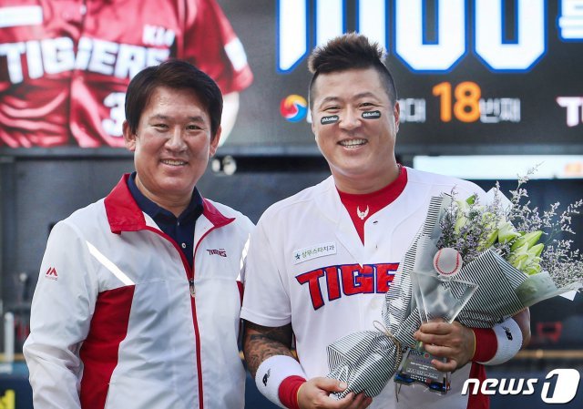 KIA 타이거즈와 FA 계약을 한 최형우와 조계현 단장. (KIA 타이거즈 제공) © 뉴스1