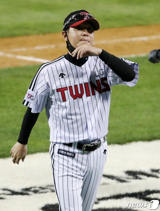 14일 오후 서울 잠실야구장에서 열린 ‘2021 신한은행 SOL KBO리그’ 삼성라이온즈와 LG트윈스의 경기에서 4대3으로 승리한 LG 류지현 감독이 팬들에게 인사 후 그라운드를 빠져나가고 있다. 2021.5.14/뉴스1 © News1