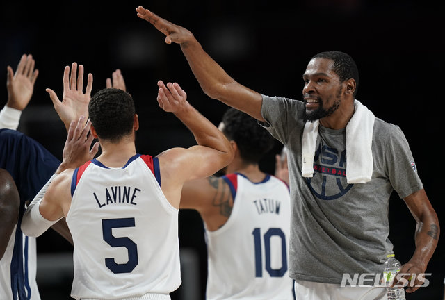 이날 미국은 초반에 고전했지만 3쿼터 반격을 통해 전세를 뒤집었다. 케빈 듀란트(브루클린)가 23점 9리바운드, 데빈 부커(피닉스)가 20점을 올렸다.