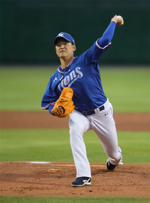 18일 대전에서 열린 한화와의 경기에 선발로 마운드에 올라 역투하고 있는 삼성의 투수 백정현. 삼성 제공