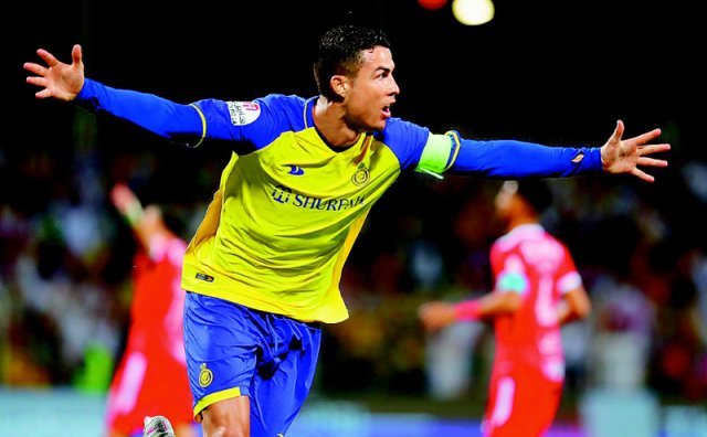 크리스티아누 호날두(알나스르)가 10일 알웨흐다와의 사우디아라비아 리그 방문경기 전반 21분 선제골을 넣은 뒤 세리머니를 하고 있다. 이날 호날두는 4골을 넣는 원맨쇼 활약으로 팀의 4-0 승리를 이끌었다. 사진 출처 크리스티아누 호날두 트위터