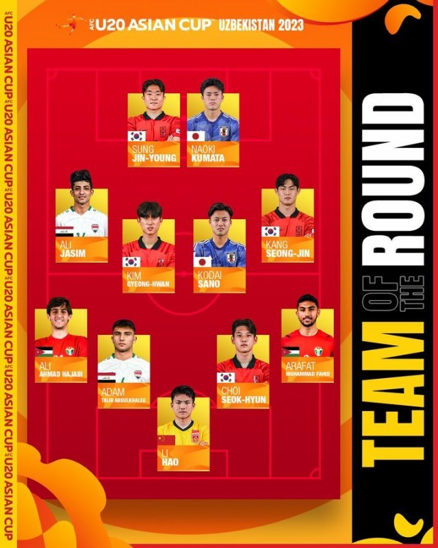 AFC는 13일(현지시간) 공식 채널을 통해 2023 AFC U-20 아시안컵 8강전에서 포지션별로 가장 인상적인 활약을 펼친 선수 11명을 공개했다.