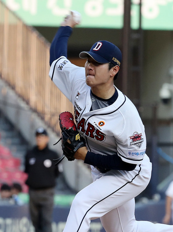올 시즌 5경기에서 3승1패, 평균자책점 0.88의 호성적으로 두산 선발 한 축을 든든히 지킨 곽빈은 이날 연패에 빠진 두산을 구하기 위한 중책을 맡았다.