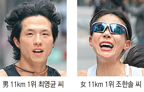 8일 서울달리기 11km 남자부에 참가한 최영균 씨(32)는 39분1초로 가장 먼저 결승선을 통과한 뒤 이렇게 소감을 밝혔다. 어린 시절부터 잔병치레로 병원 신세를 많이 졌던 최 씨는 ‘부모님에게 건강한 몸을 선물하자’는 생각에 8년 전부터 달리기를 시작했다. 회사원인 그는 이후 하루도 빠짐없이 매일 새벽 달렸다. 주당 평균 100km를 달린다. 평소 지인들과 술을 자주 마시지만 다음 날 새벽에는 반드시 일어나 ‘해장런’을 한다고 한다. 최 씨는 “마라톤 시즌이 시작되면서 각종 대회가 많아 최근에 무리를 좀 해서 기대를 하지 않았다. 제 개인기록을 깨지는 못했지만 결과가 좋아 기쁘다. 특히 여러 자원봉사자분들이 코스 곳곳에서 응원을 해준 것이 힘이 됐다”고 했다.