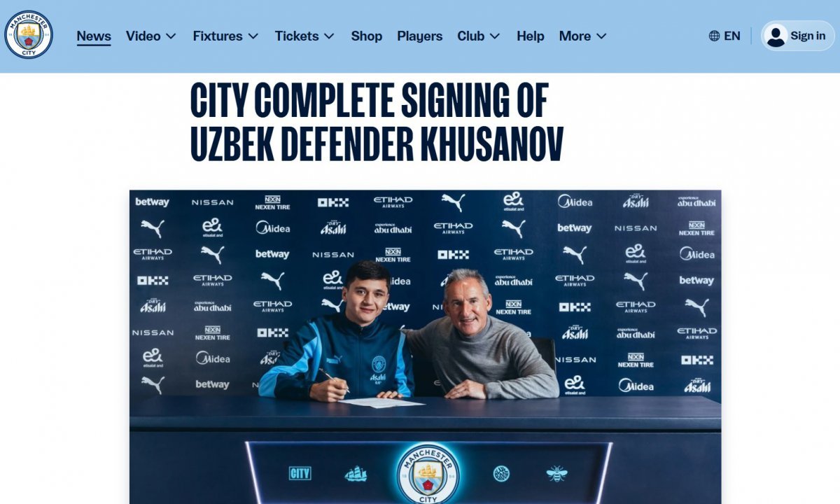우즈벡 후사노프, 맨체스터 시티 입단…자국 첫 프리미어리거