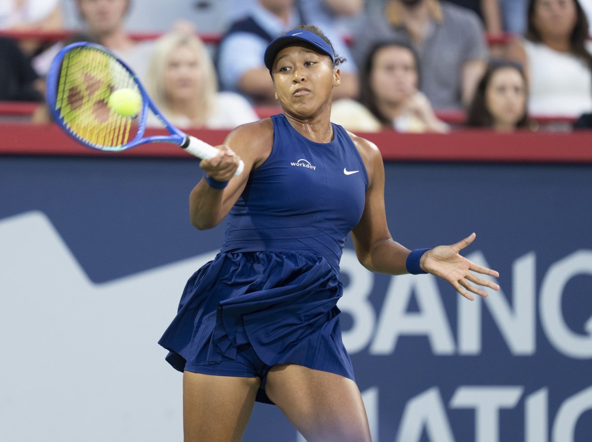 오사카 나오미(49위·일본)가 5일(현지 시간) 캐나다 몬트리올에서 열린 여자프로테니스(WTA) 투어 옴니엄 뱅크 내셔널(WTA1000) 단식 8강전에서 엘리나 스비톨리나(13위·우크라이나)와 경기하고 있다. 오사카가 2-0(6-2 6-2)으로 승리하고 4강에 올랐다. 2025.08.06 몬트리올=AP 뉴시스