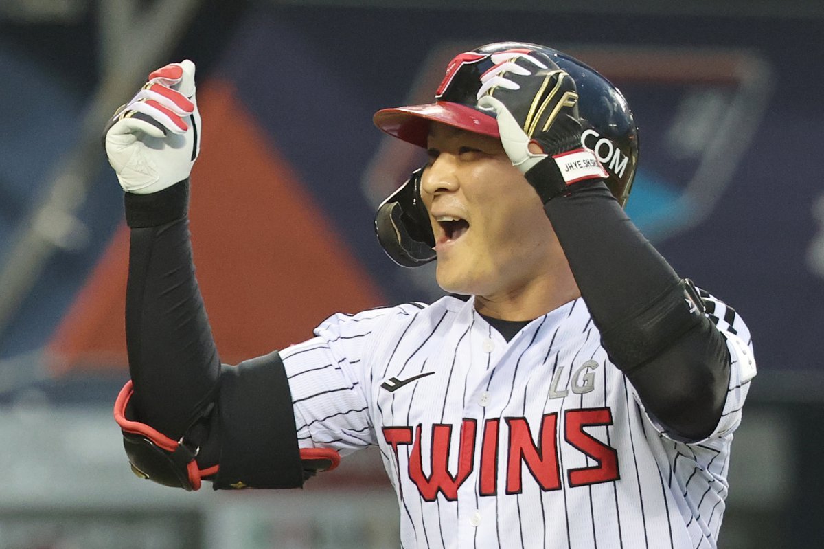 15일 오후 서울 송파구 잠실야구장에서 열린 ‘2025 신한 SOL 뱅크 KBO리그’ 키움 히어로즈와 LG 트윈스의 경기 4회말 LG 공격 2사 1루 상황에서 오지환이 선제 투런 홈런을 쏘아올린 후 기뻐하고 있다. 2025.5.15 뉴스1