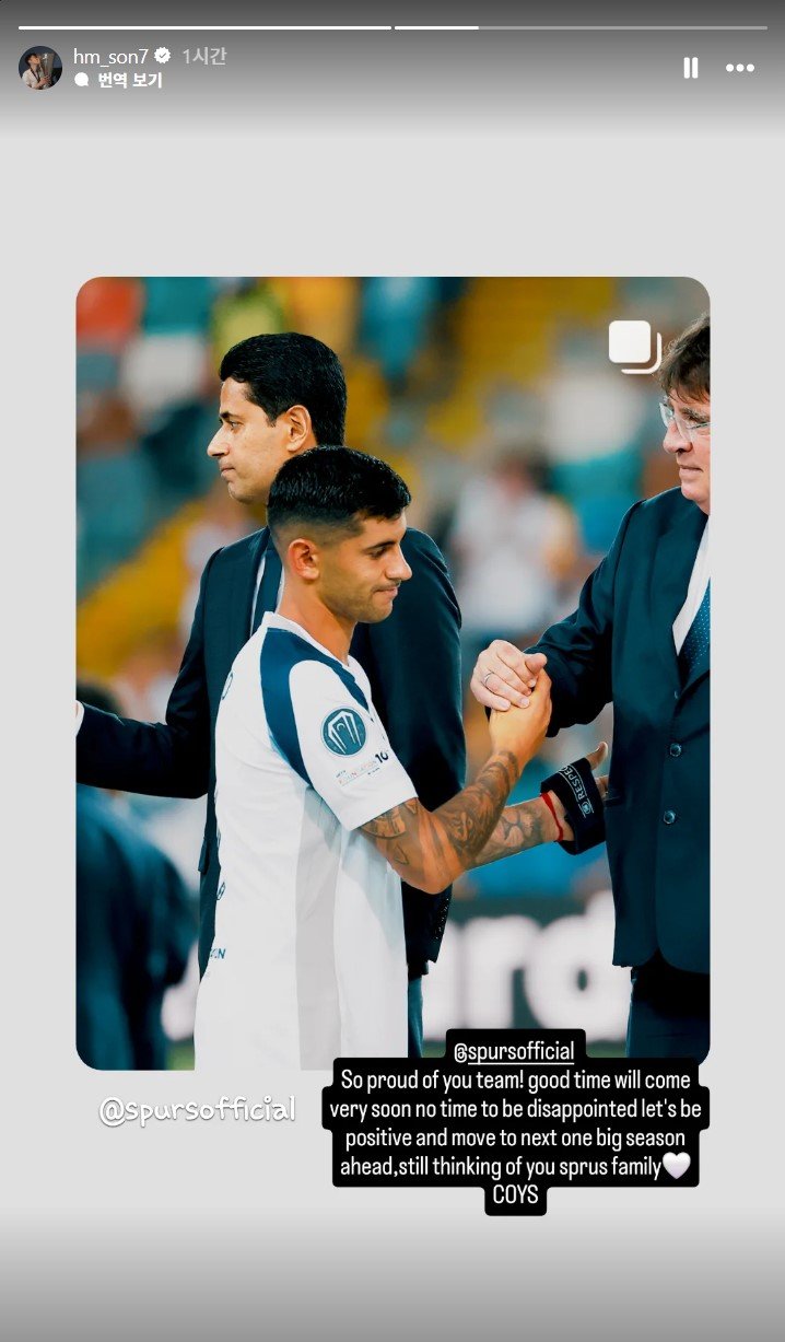 지난 7일 토트넘을 떠나 LAFC로 이적해 이번 경기에 함께 하지 못한 손흥민이 역전패를 당한 옛 동료들에게 메시지를 남겼다.