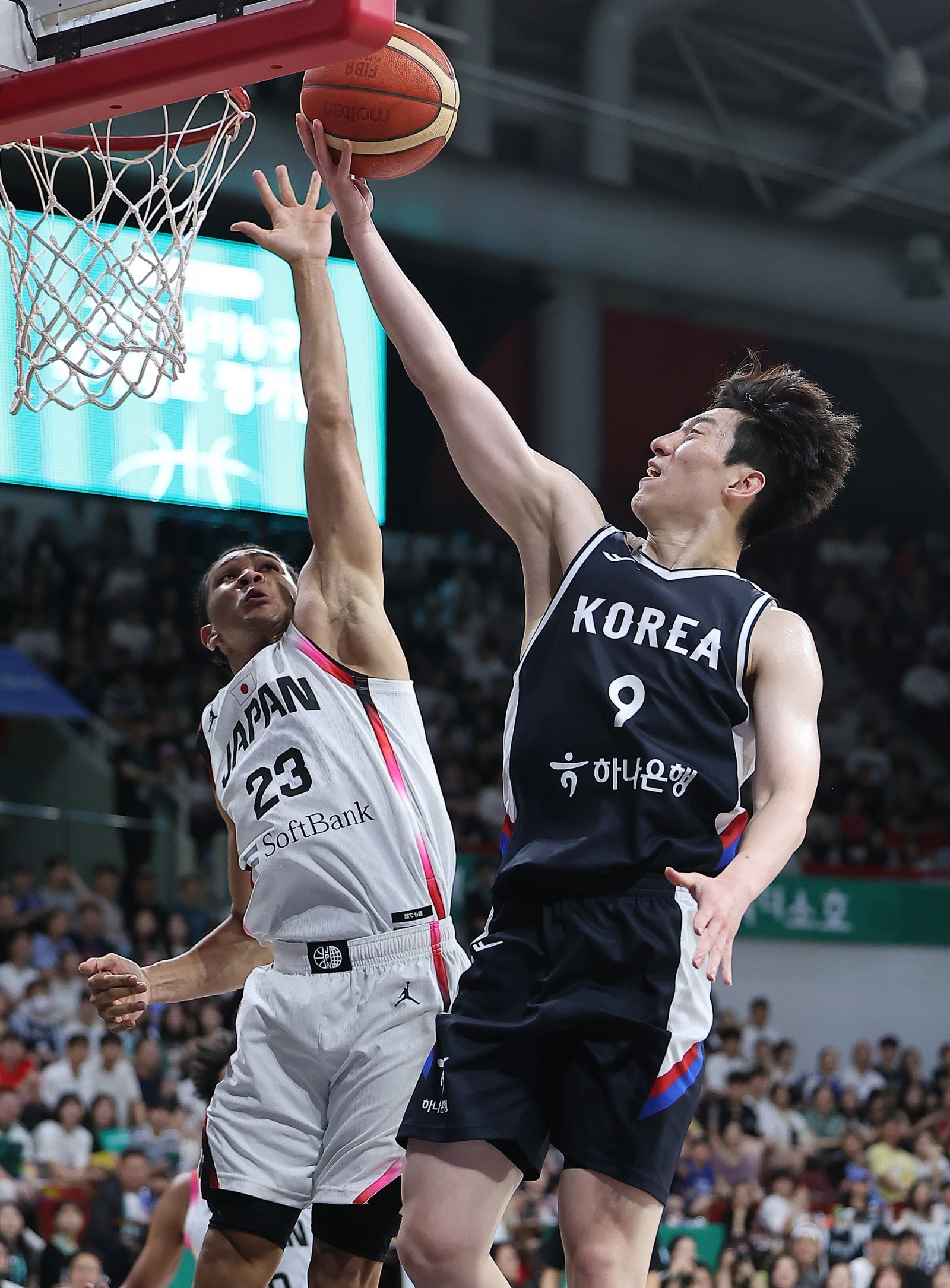 13일 오후 경기도 안양 정관장 체육관에서 열린 하나은행 초청 2025 남자농구 국가대표 평가전 대한민국과 일본의 경기, 대한민국 이정현(오른쪽)이 2쿼터 레이업 슛을 성공하고 있다. 2025.7.13/뉴스1