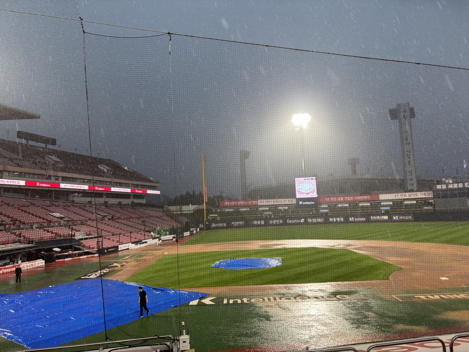 전날 수원 LG-KT전은 경기 개시 직전 갑자기 많은 비가 쏟아지기 시작하면서 오후 6시35분께 취소된 바 있다.