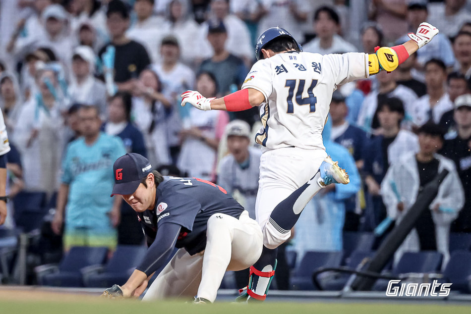 이 실책에 흔들린 박세웅은 계속된 2사 1, 3루에서 박건우에게 동점 적시타를 맞았다.
