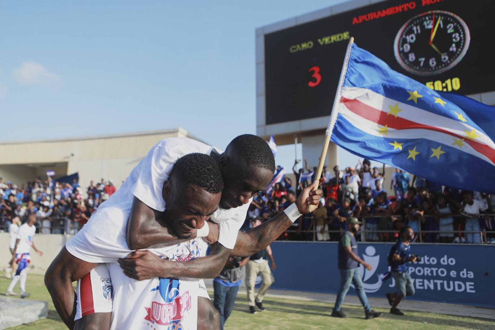 카보베르데 축구 대표팀 선수들이 14일 자국 수도 프라이아에서 열린 2026년 북중미 월드컵 아프리카 지역 예선 D조 최종 10차전에서 에스와티니를 3-0으로 꺾은 후 환호하고 있다. 카보베르데는 이날 승리로 승점 23(7승 2무 1패)을 기록하며 팀 역사상 첫 번째로 월드컵 본선행 티켓을 따냈다. 프라이아=AP 뉴시스