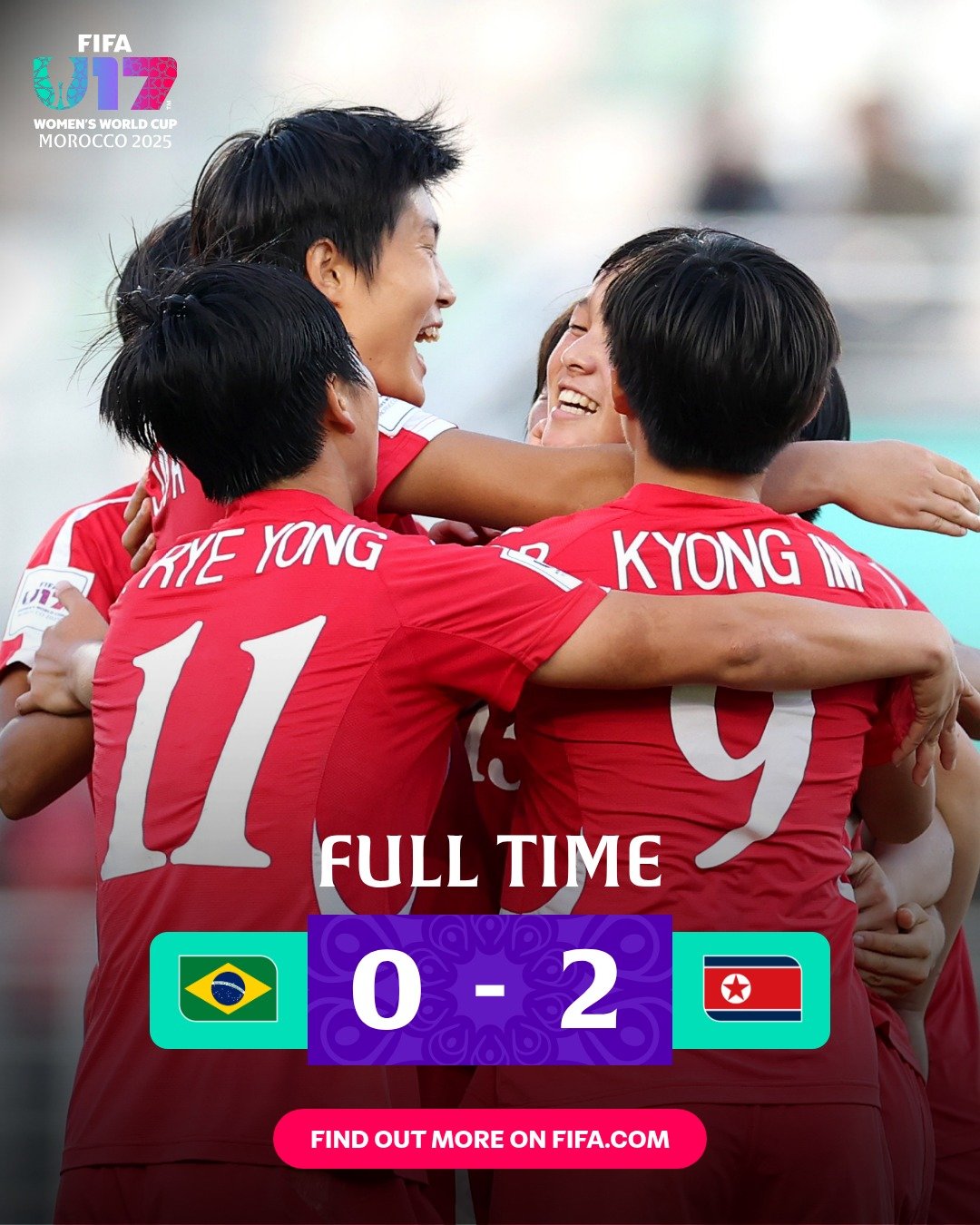 북한 17세 이하(U-17) 여자 축구대표팀이 ‘삼바군단’ 브라질을 꺾고 2025 국제축구연맹(FIFA) U-17 여자 월드컵 결승에 올랐다.