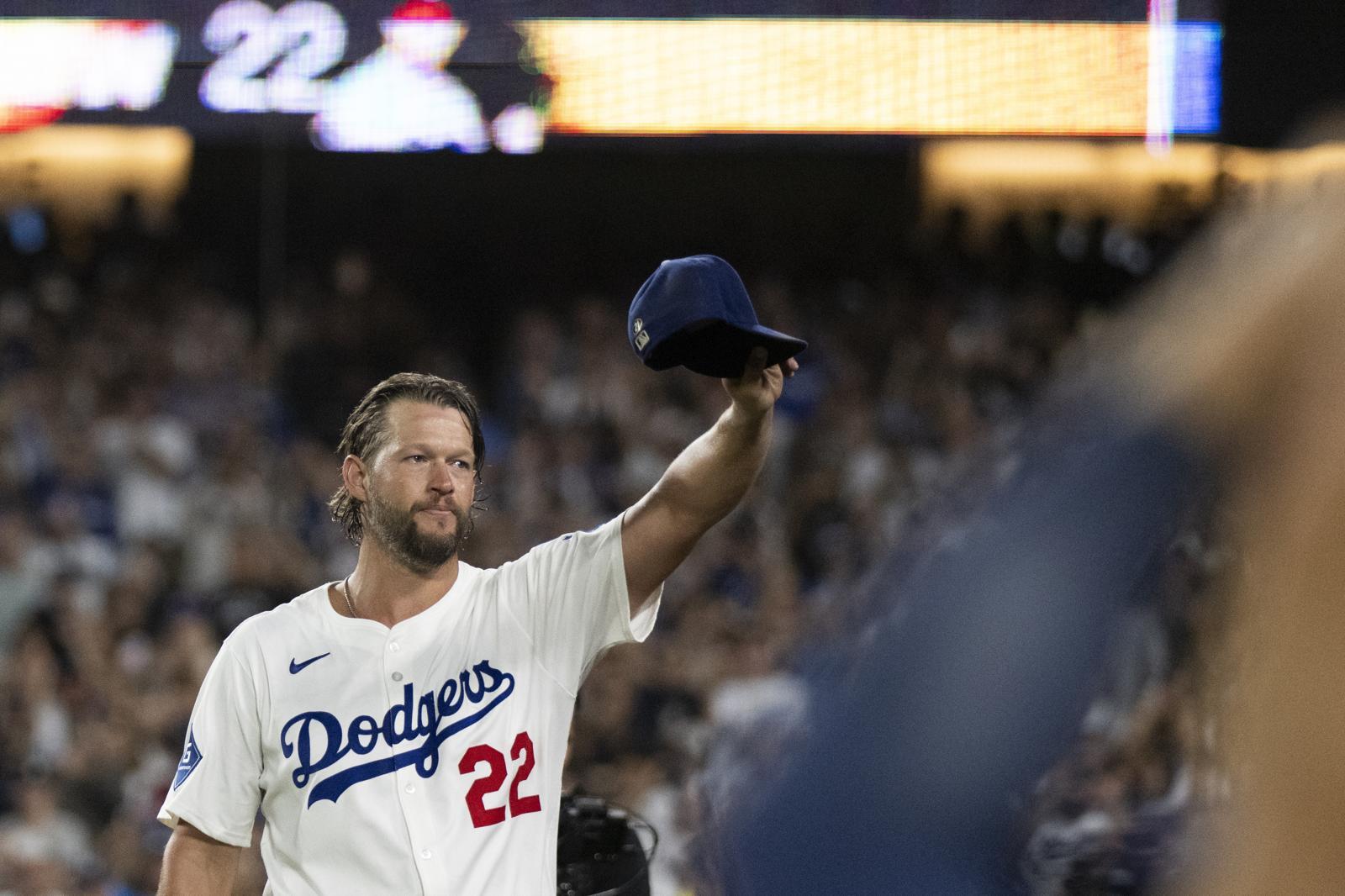 LA 다저스의 클레이튼 커쇼가 9월 20일(한국 시간) 미국 캘리포니아주 로스앤젤레스의 다저스타디움에서 열린 2025 MLB 샌프란시스코 자이언츠와의 홈 경기에 선발 등판해 관객들에게 모자를 벗어 인사하고 있다. 2025.09.20 로스앤젤레스=AP/뉴시스
