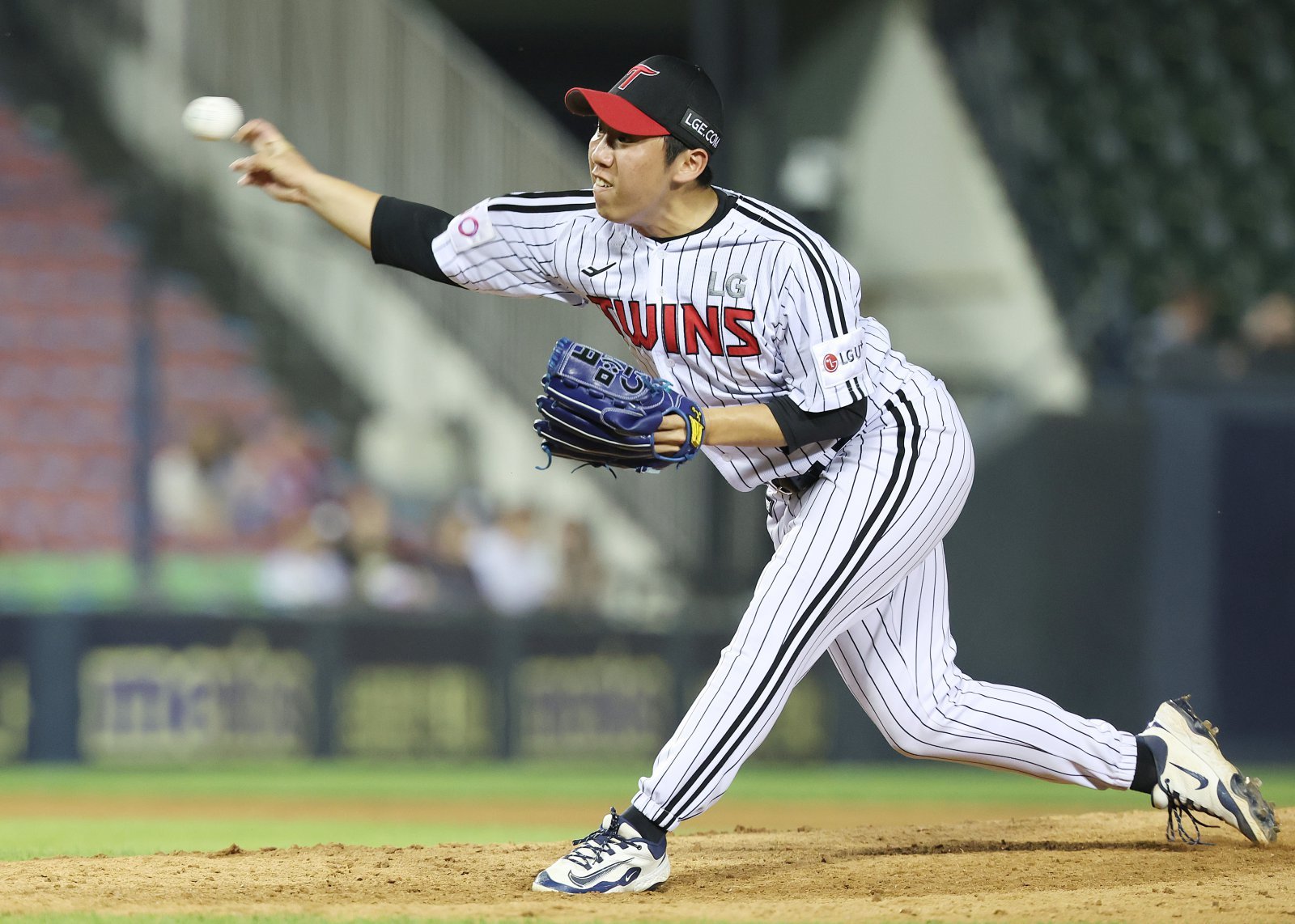 12일 오후 서울 송파구 잠실야구장에서 열린 2025 KBO리그 SSG 랜더스와 LG 트윈스의 경기, 9회초 LG 마무리 박명근이 공을 던지고 있다. 2025.06.12. 서울=뉴시스