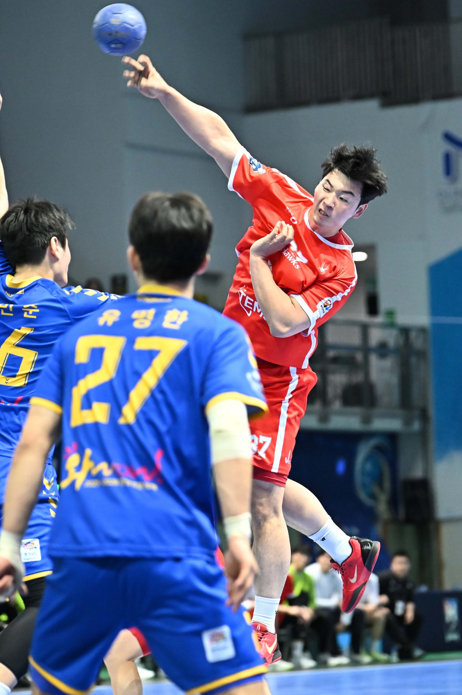 SK호크스는 6일 오후 3시 인천광역시 선학체육관에서 진행된 신한 SOL 뱅크 2025~2026시즌 핸드볼 H리그 남자부 2라운드 제1매치 데이 첫 번째 경기에서 충남도청을 19-17로 이겼다.