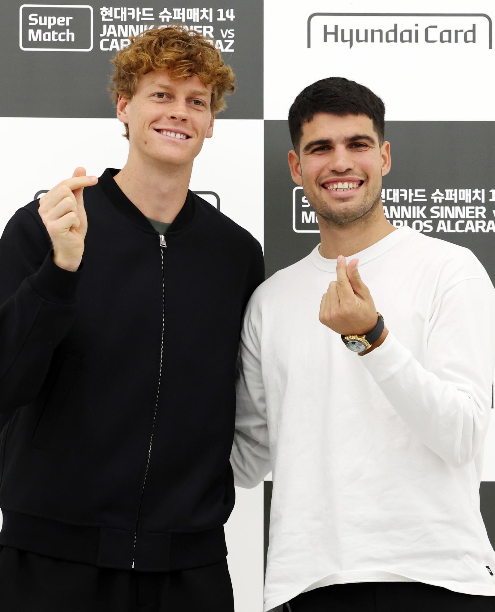 한국은 남자프로테니스(ATP)투어 대회가 열리지 않는 나라다. 지난해까지 2년 연속으로 메이저대회 우승 트로피를 정확히 절반씩 나눠 가진 두 선수의 한국 방문도 이번이 처음이다. 9일 서울 여의도 현대카드 본사에서 열린 기자회견에서 신네르는 “이번 일정 덕에 한국에 들를 수 있게 됐다. 호주오픈은 우리 모두에게 정말 중요한 대회인데 좋은 준비를 할 수 있을 것”이라고 말했다.