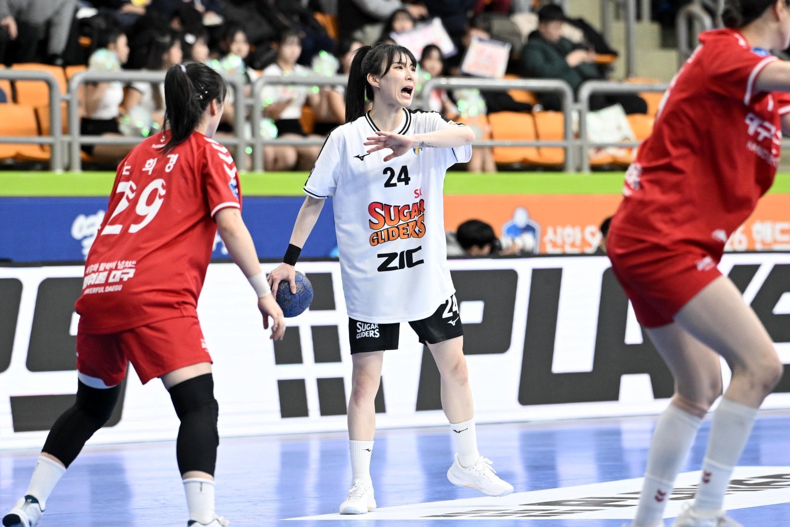 SK슈가글라이더즈는 18일 오후 4시 경기도 광명시 광명시민체육관에서 진행된 신한 SOL 뱅크 2025~2026시즌 핸드볼 H리그 여자부 1라운드 제3매치 경기에서 대구광역시청을 26-23으로 이겼다.