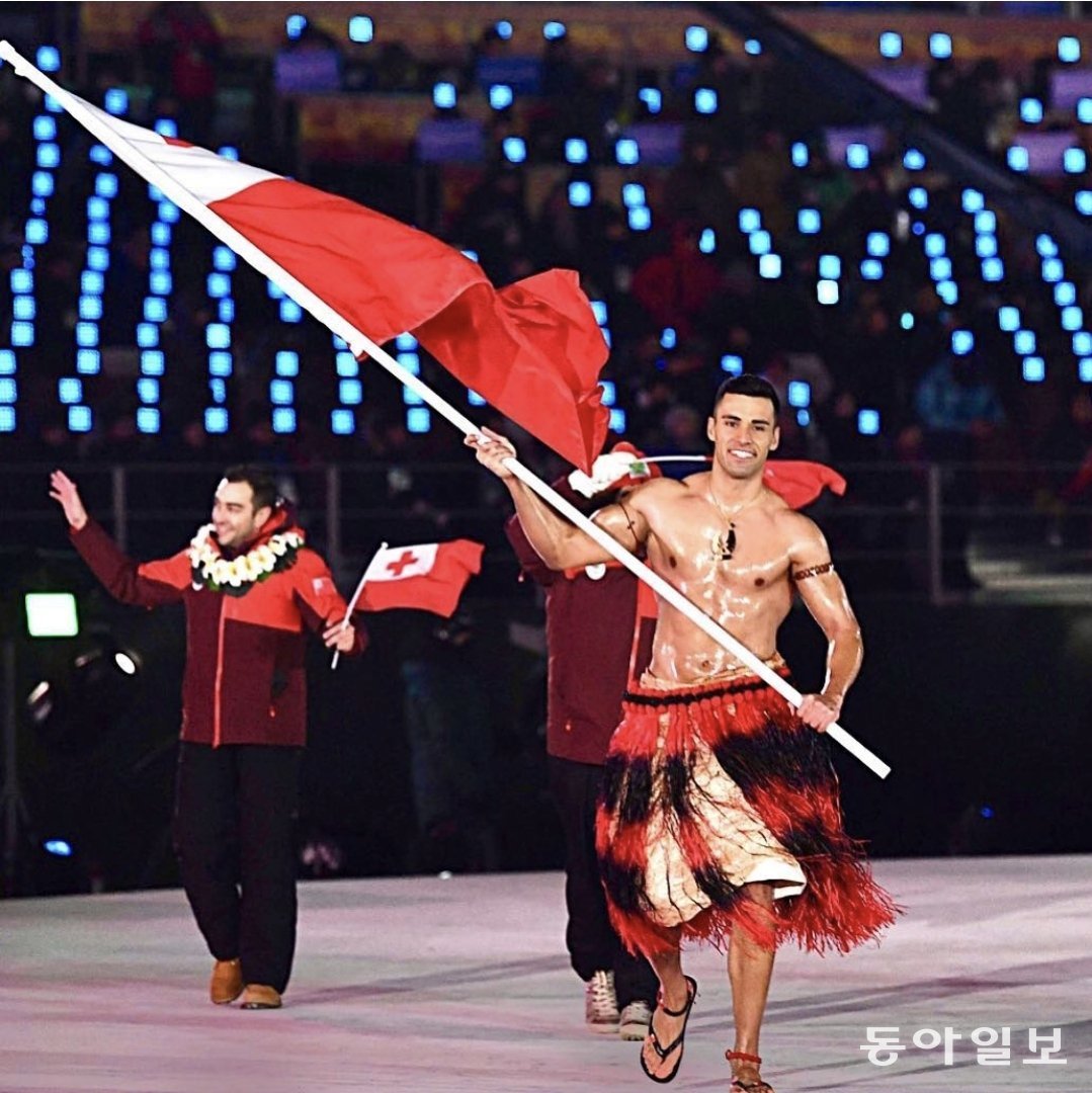 자신의 첫 올림픽인 2016년 리우 대회 개회식 당시 타우파토푸아의 모습. 사진출처 피타 타우파토푸아 인스타그램타우파토푸아의 ‘상의 탈의 퍼포먼스’는 2018년 평창 대회에서 정점을 찍었다. 이 대회 개막을 앞두고 겨울 평균기온이 영하 5도에 가까운 평창에서 타우파토푸아가 또 윗옷을 벗고 등장할지 관심을 모았다. 파우파토푸아는 이 대회에 크로스컨트리 스키 선수로 출전했다.
