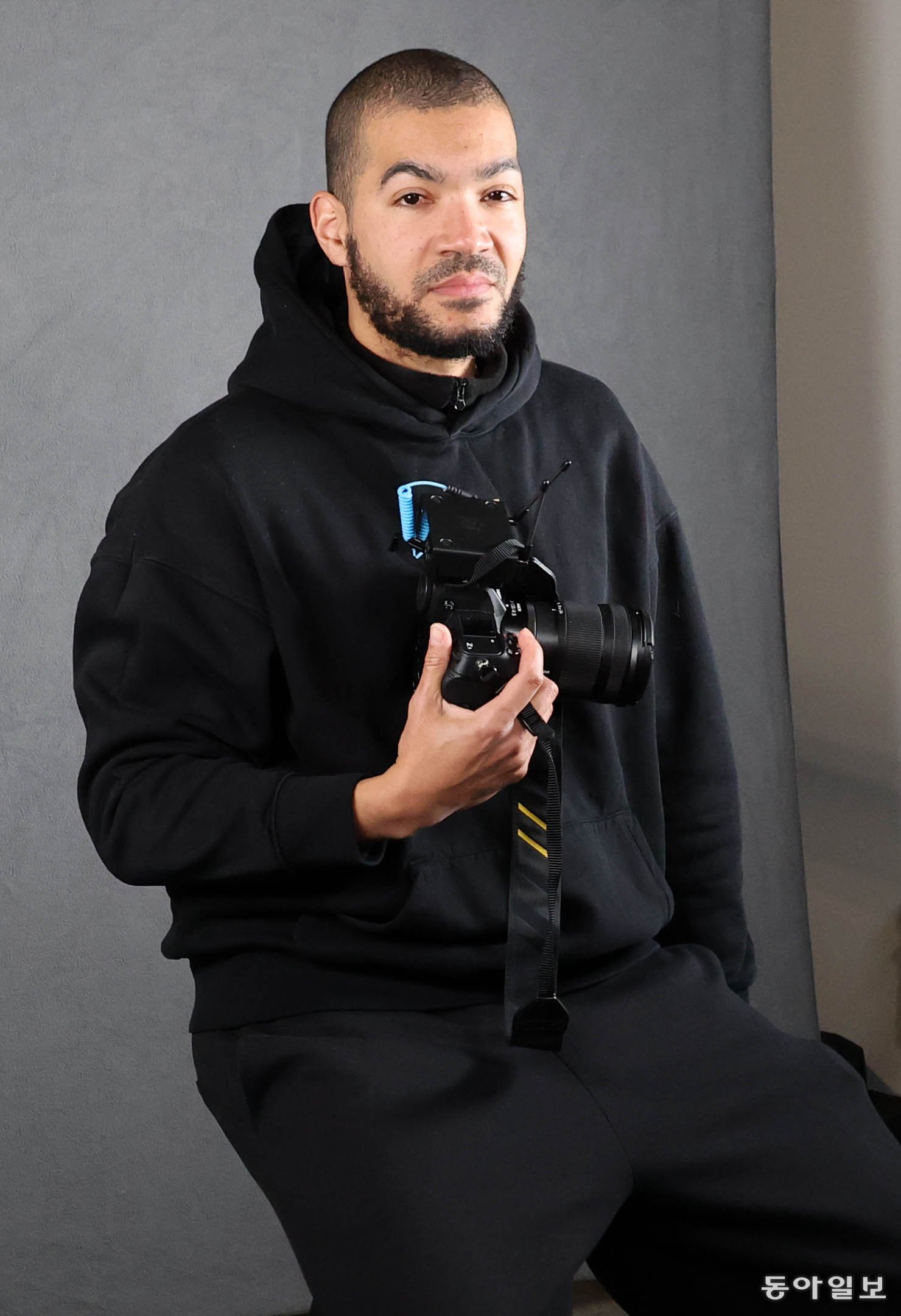 2026 밀라노-코르티나담페초 겨울올림픽 참가 선수들의 공식 사진을 촬영하는 조이 샤펠 씨(프랑스)가 2일 밀라노 스피드스케이팅 스타디움 입구 인근에 위치한 간이 스튜디오 의자에 앉아 선수들을 기다리고 있다. 밀라노=전영한 기자 scoopjyh@donga.com