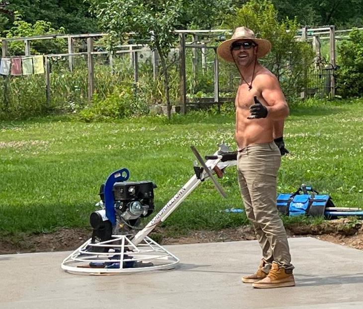 미국 스노보드 대표팀의 최고령 선수 닉 바움가트너가 비시즌 동안 콘크리트 타설 작업을 하고 있는 모습(위쪽 사진). 바움가트너는 이번 밀라노-코르티나담페초 대회를 통해 통산 다섯 번째 올림픽에 나선다.