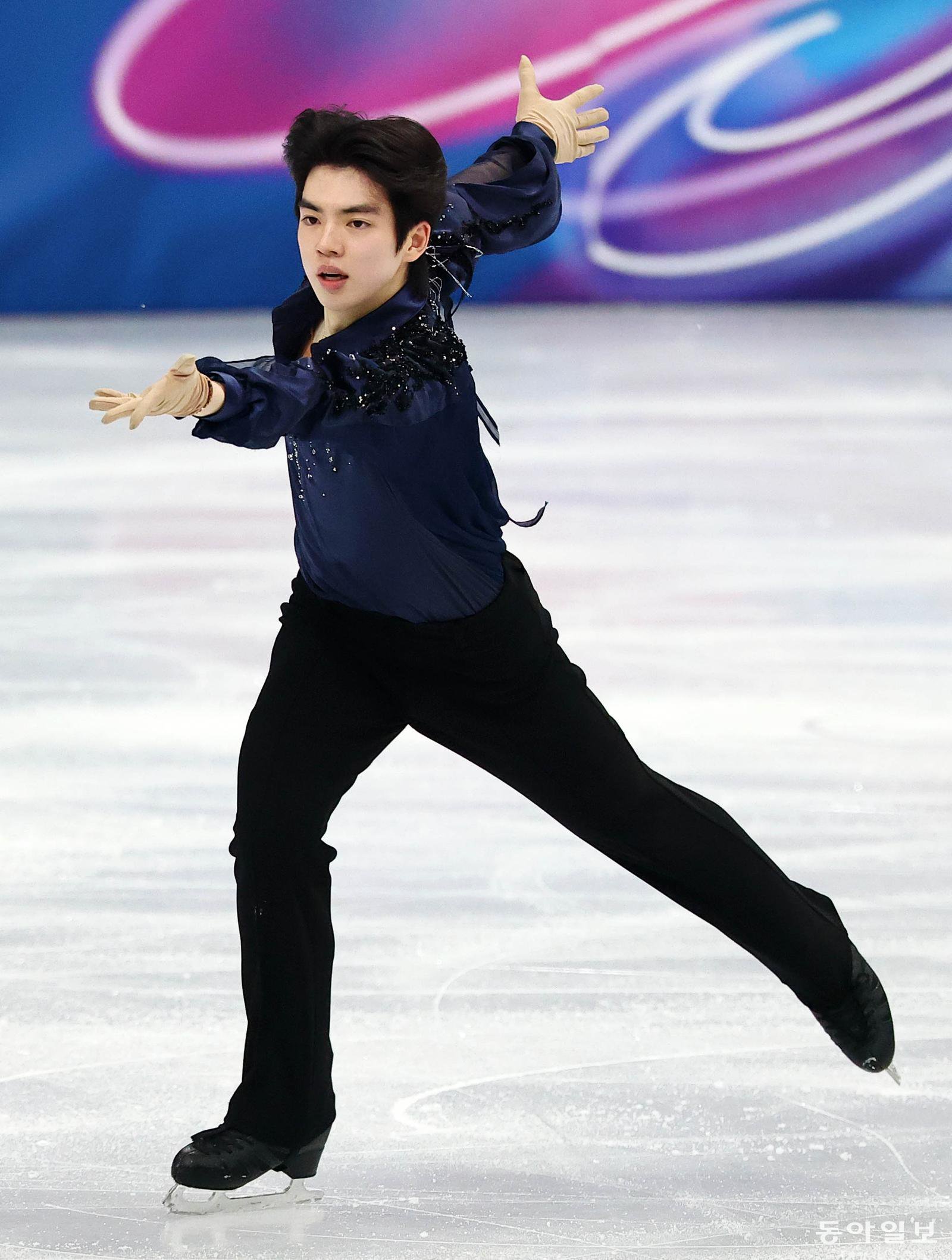 8일(한국시간)이탈리아 밀라노 아이스 스케이팅 아레나에서 한국 피겨스케이팅 차준환 선수가 싱글 쇼트프로그램에서 멋진 연기를 보여주고 있다.