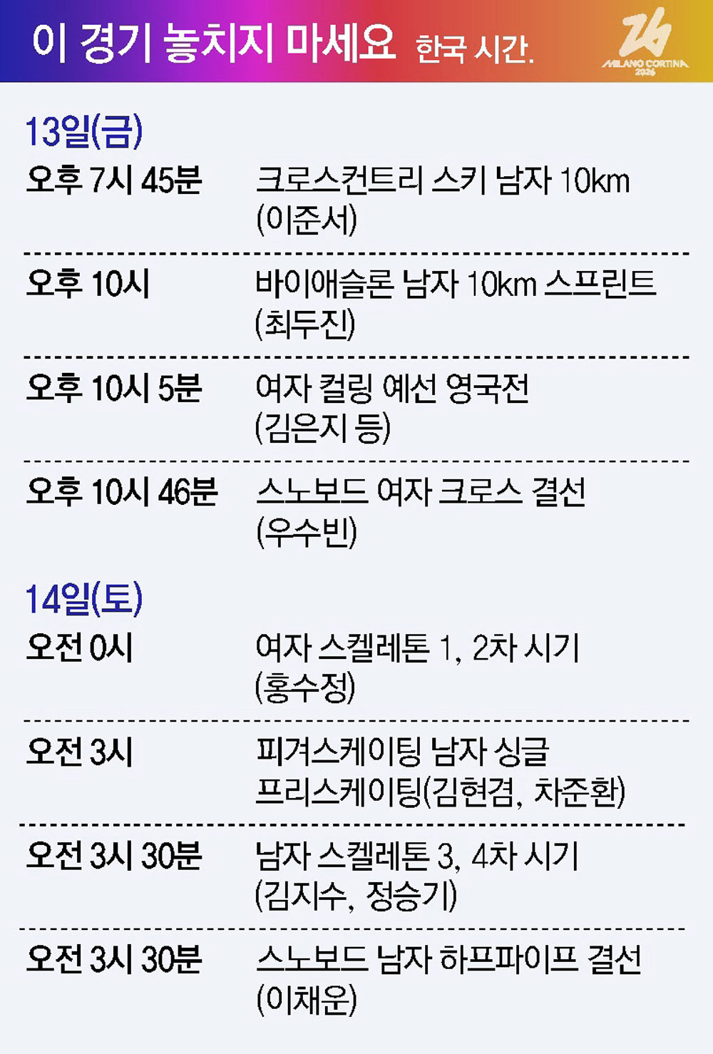 ‘피겨 프린스’ 차준환은 지난달 국제빙상경기연맹(ISU) 4대륙선수권대회 남자 싱글 준우승 때 입었던 흰색 옷을 입고 14일 2026 밀라노-코르티나담페초 겨울올림픽 프리스케이팅 연기에 나선다. 베이징=AP 뉴시스한국 남자 싱글 최초의 올림픽 메달 획득을 노리는 차준환은 이날 열린 2026 밀라노-코르티나담페초 겨울올림픽 피겨 남자 싱글 쇼트프로그램에서 92.72점을 받아 6위에 자리했다. 1위는 108.16점을 받은 ‘쿼드의 신’ 일리야 말리닌(22·미국)이 차지했다. 일본의 가기야마 유마(23·103.07점)와 프랑스의 아당 샤오잉파(25·102.55점)가 각각 2, 3위에 자리했다. 샤오잉파에게 9.83점이 뒤지고 있는 차준환은 14일 프리스케이팅에서 대역전을 노린다.
