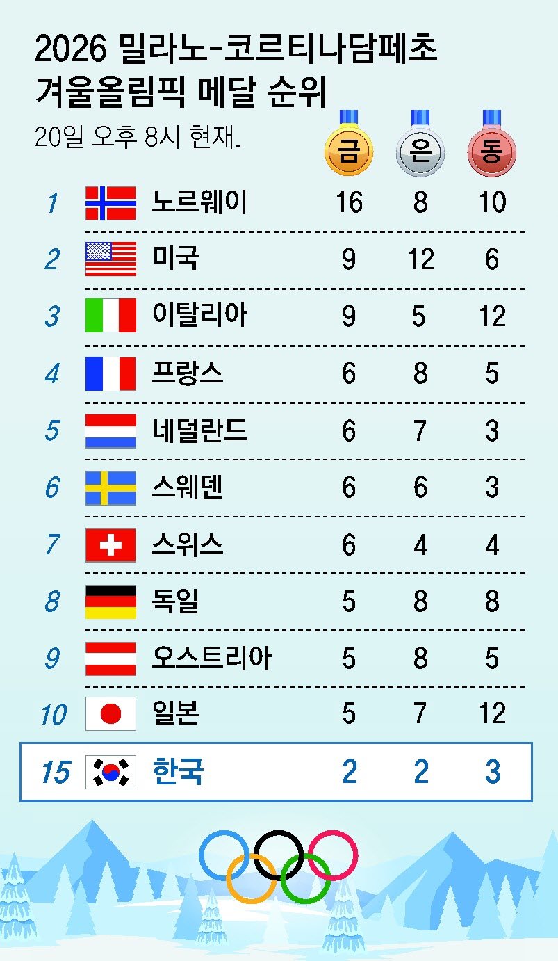 얼리사 류(21·미국)가 2026 밀라노-코르티나담페초 겨울올림픽 피겨스케이팅 여자 싱글 챔피언에 올랐다. 류는 20일 이탈리아 밀라노 아이스스케이팅 아레나에서 열린 프리스케이팅에서 클린 연기를 펼치며 개인 최고점인 150.20점(1위)을 받았다. 쇼트프로그램 3위(76.59점)였던 류는 단숨에 순위를 1위로 끌어올리며 역전 우승에 성공했다. 류는 팀 이벤트(단체전)에 이어 대회 2관왕에 올랐다.