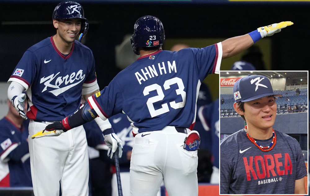 타자들은 세리머니로도 팀 분위기를 끌어올렸다. 위트컴은 홈런을 쳐낸 뒤 홈으로 돌아오면서 양손을 펼쳐 날아오르는 듯한 세리머니를 펼쳤다. “전세기를 타고 8강 토너먼트가 열리는 미국 마이애미로 가자”는 뜻으로 노시환(26·한화)이 처음 아이디어를 냈고 선수단도 이를 받아들이면서 대표팀 공식 세리머니가 됐다.