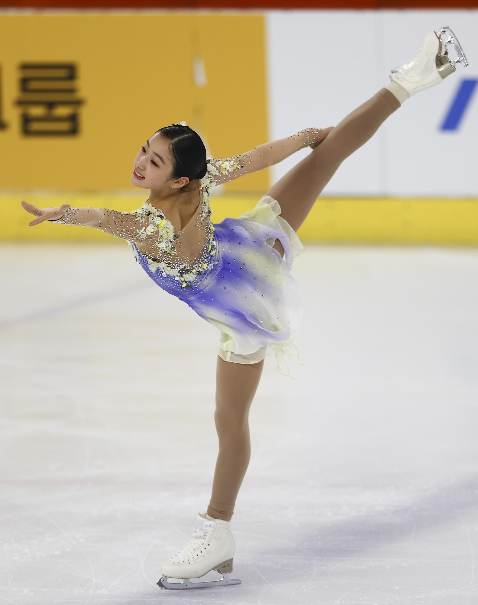 피겨 스케이팅 허지유(서울시 빙상경기연맹, 중등부)가 30일 서울 양천구 목동 아이스링크에서 열린 2025 KB금융 전국남녀 피겨스케이팅 회장배 랭킹대회에서 여자 시니어부문 프리스케이팅 연기를 선보이고 있다. 이번 대회는 2026 ISU 사대륙 피겨스케이팅 선수권대회 파견선수 선발전과 2026 밀라노 코르티나 동계올림픽대회 1차 선발전, 2026/27 국가대표 1차 선발전으로 진행된다. 2025.11.30. 서울=뉴시스