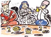 세 사람은 정자에 자리를 잡고 앉아 세상 이야기에 흥을 돋우고 있었다. 입담이 좋은 대신은 세상에 희한한 이야기며, 재미있는 익살이며, 마음을 들뜨게하는 모험담을 늘어놓기 시작했고, 마루프는 그의 이야기에 정신없이 귀를 기울이고 있었다.