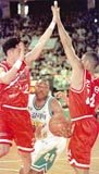 반면 동양은 1차전에서 27득점한 그레이가 추승균의 그림자 수비에 막혀 전반에 7득점에 그쳤고 김광운의 외곽포도 숨을 죽였다. 무릎부상에서 회복하지 못한 전희철이 통증을 호소, 3쿼터 초반 코트를 떠나면서부터는 싱거운 경기.
