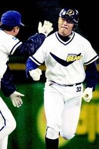 서울라이벌 두산-LG의 시즌 첫 맞대결이 펼쳐진 11일 잠실구장. 심정수는 1대1로 팽팽히 맞선 7회말 LG 선발 헤리거의 5구를 받아쳐 좌측펜스를 넘기는 홈런으로 팀에 2-1승리를 안겼다.결승홈런이자 개인통산 100번째 홈런.팀의 8천번째 타점까지 기록하는 겹경사를 누린 심정수의 얼굴은 달빛에 비친 벚꽃처럼 환했다.