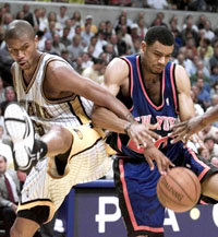 반면 뉴욕은 1쿼터 6분을 남기고 패트릭 유잉이 발목부상으로 전력에서 제외되는 악조건 속에서도 선전, 홈에서 대반격을 예고했다.작년 컨퍼런스 결승에서 펄펄 날았던 래리 존슨은 뉴욕의 공격을 이끌며 25득점을 기록, 오랜만에 이름값을 했다. 그러나 뉴욕이 자랑하는 ‘쌍포’ 스프리웰(10득점)과 앨런 휴스턴(15득점)이 부진, 승부를 뒤집지는 못했다.