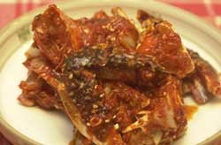 손질한 꽃게(1㎏)는 집게발과 발의 끝 부분을 떼고 딱딱한 부분을 방망이로 두들기거나 길게 칼집을 낸다. 몸통에 다리를 붙인 채로 게가 크면 4∼6등분하고 작으면 반으로 자른다. 여기에 소금 10g을 뿌려 3시간쯤 냉장고에 넣어둔 뒤 체에 받쳐 물기를 뺀다.