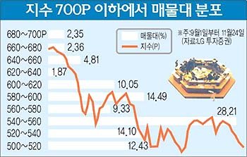 매물 분포를 감안하면 550포인트 전후의 매물대 돌파가 1차 관건이며 이 매물대가 돌파될 때는 내친 김에 600∼630선까지 오를 수 있을 것으로 예상했다.