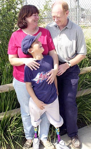 95년 로스앤젤레스 인근 모레노밸리의 미국인 찰스 로버트 킹(48·컴퓨터 엔지니어)과 도나(48) 부부의 세 번째 양자로 입양된 킹군은 미국 도착 후 세 차례나 손가락 분리 수술을 받았다. 결국 손가락 네 개는 찾았지만 다리뼈가 휘고 썩어 허벅지 아래를 모두 잘라내는 아픔을 겪어야 했다.